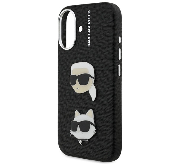 KARL LAGERFELD GRAINED PU K&CH HEADS szilikon telefonvédő (ütésállóság, bőr hatású hátlap, 3D) FEKETE