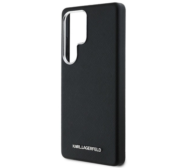 KARL LAGERFELD PU SAFFIANO METAL LOGO AND FRAME szilikon telefonvédő (ütésállóság, bőr hatású hátlap, 3D) FEKETE
