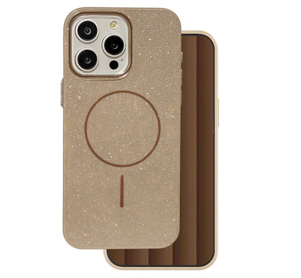 Szilikon telefonvédő (műanyag hátlap, kameravédő, MagSafe, csillogó) BARNA