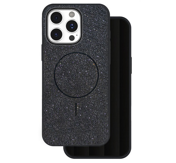 Szilikon telefonvédő (műanyag hátlap, kameravédő, MagSafe, csillogó) FEKETE