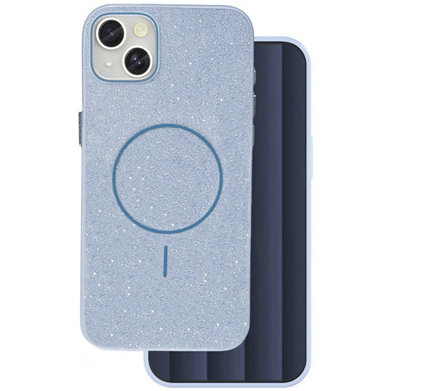 Szilikon telefonvédő (műanyag hátlap, kameravédő, MagSafe, csillogó) VILÁGOSKÉK