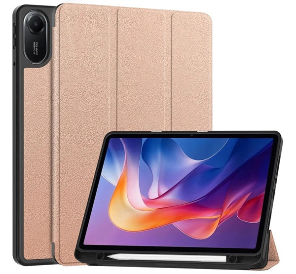 Tok álló, bőr hatású (aktív FLIP, oldalra nyíló, TRIFOLD, asztali tartó, ceruza tartó) ROZÉARANY