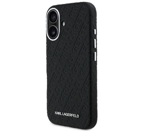 KARL LAGERFELD GRAINED PU REPEATED LOGO MAGSAFE szilikon telefonvédő (ütésállóság, bőr hatású hátlap, MagSafe) FEKETE