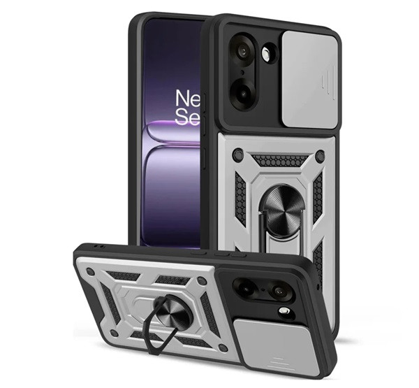 Defender szilikon telefonvédő (ütésállóság, tartógyűrű, kameravédő) EZÜST