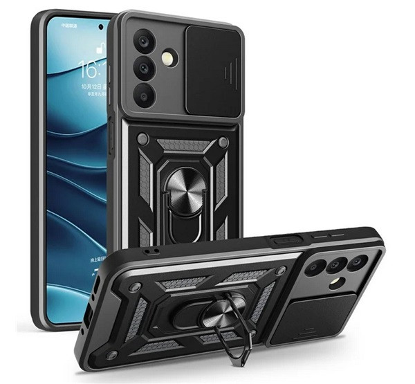 Defender szilikon telefonvédő (ütésállóság, tartógyűrű, kameravédő) FEKETE