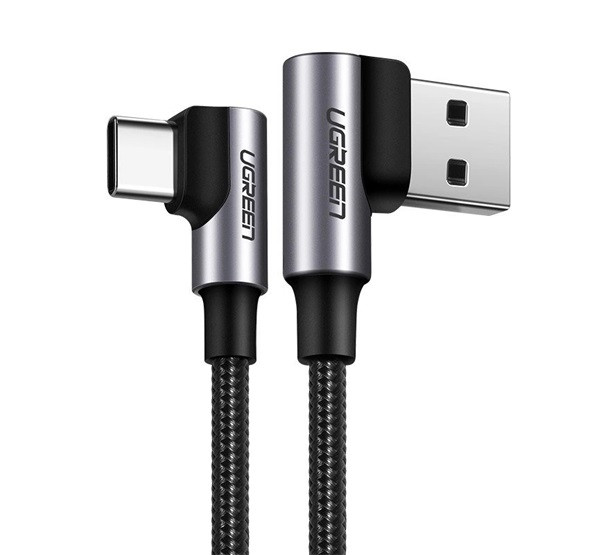UGREEN US176 adatkábel (USB - Type-C, 3A, gyorstöltő 3.0, 90 fokos, cipőfűző, 200cm) SÖTÉTSZÜRKE