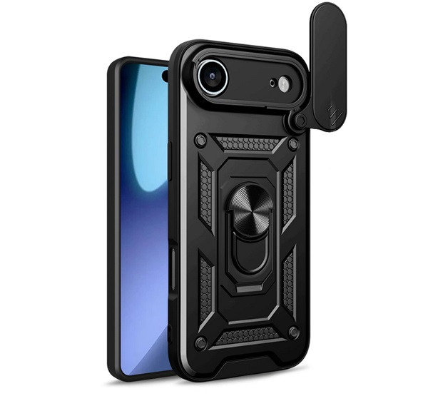Defender szilikon telefonvédő (ütésállóság, tartógyűrű, kameravédő) FEKETE