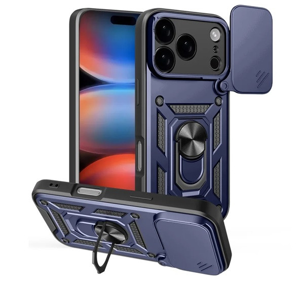 Defender szilikon telefonvédő (ütésállóság, tartógyűrű, kameravédő) SÖTÉTKÉK