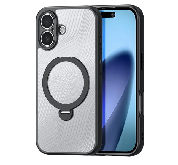 DUX DUCIS AIMO szilikon telefonvédő (ütésállóság, kameravédő, MagSafe, kitámasztó, hullám) FEKETE