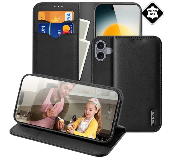 DUX DUCIS HIVO tok álló, valódi bőr (FLIP, oldalra nyíló, asztali tartó, kártyazseb, RFID) FEKETE