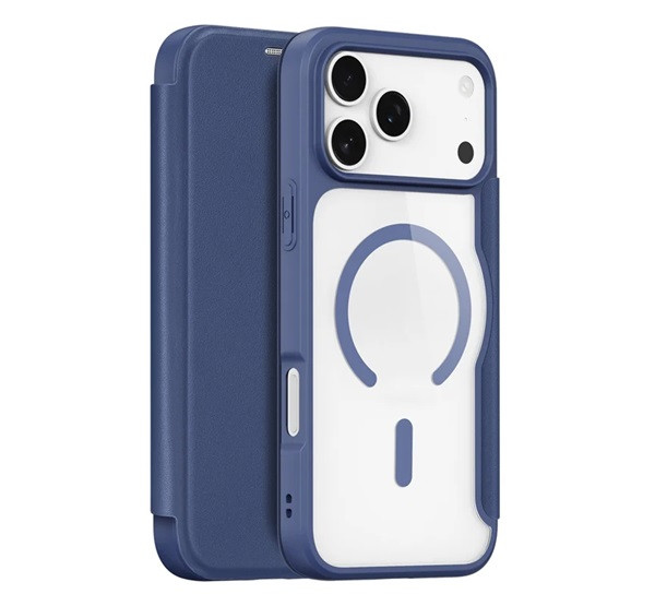 DUX DUCIS SKIN X PRO tok álló, bőr hatású (FLIP, oldalra nyíló, RFID, MagSafe) SÖTÉTKÉK