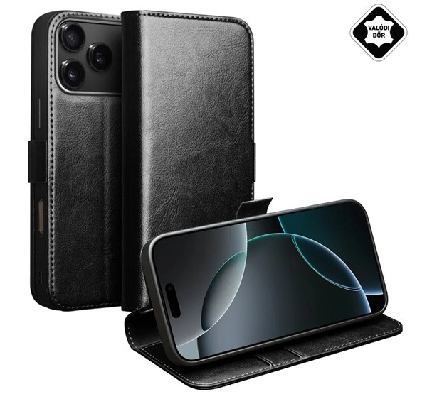 QIALINO tok álló, valódi bőr (FLIP, oldalra nyíló, asztali tartó) FEKETE