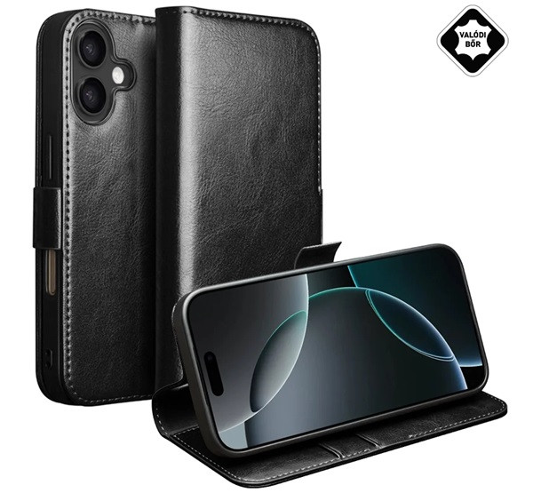 QIALINO tok álló, valódi bőr (FLIP, oldalra nyíló, asztali tartó) FEKETE