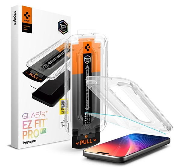 SPIGEN GLASS TR EZ FIT PRO HD képernyővédő üveg (2.5D, tokbarát, ultravékony, 0.2mm, 9H + segédkeret) ÁTLÁTSZÓ