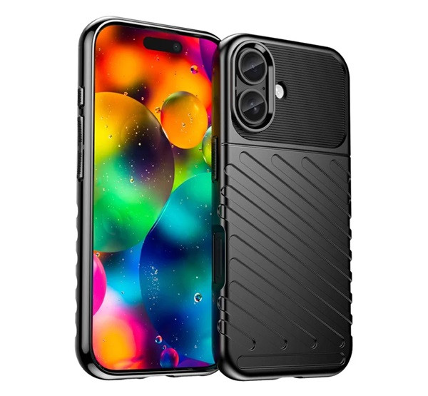 Szilikon telefonvédő (ütésállóság, csíkos, dombor minta) FEKETE