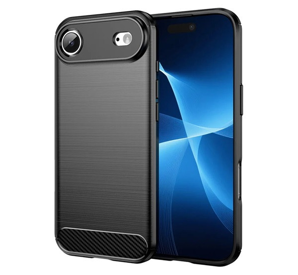 Szilikon telefonvédő (ütésállóság, légpárnás sarok, szálcsiszolt, karbon minta) FEKETE