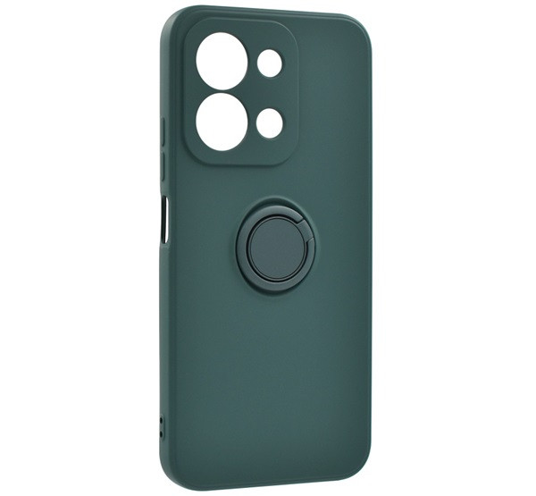 Szilikon telefonvédő (tartógyűrű, mikrofiber plüss belső, mágneses, kameravédő) SÖTÉTZÖLD