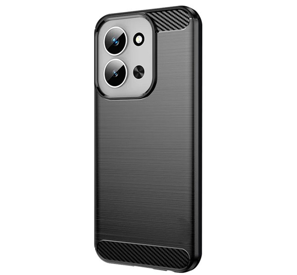 Szilikon telefonvédő (ütésállóság, légpárnás sarok, szálcsiszolt, karbon minta) FEKETE