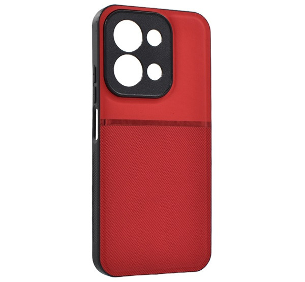 Szilikon telefonvédő (ütésállóság, mágneses, bőr hatású hátlap, csíkos) PIROS