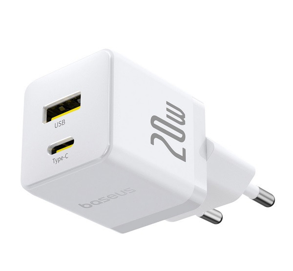 BASEUS PALM hálózati töltő USB+Type-C aljzat (20W, PD gyorstöltő 3.0) FEHÉR