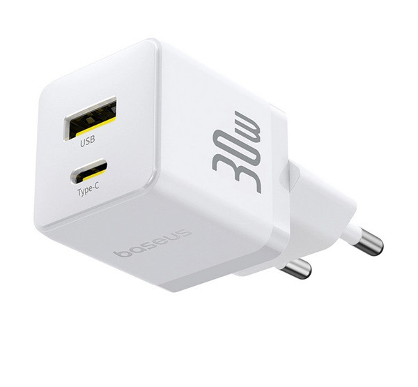 BASEUS PALM hálózati töltő USB+Type-C aljzat (30W, PD gyorstöltő 3.0) FEHÉR