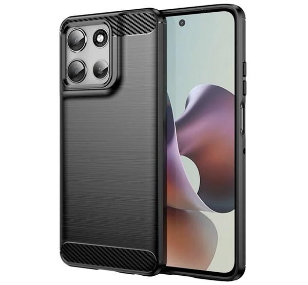 Szilikon telefonvédő (ütésállóság, légpárnás sarok, szálcsiszolt, karbon minta) FEKETE