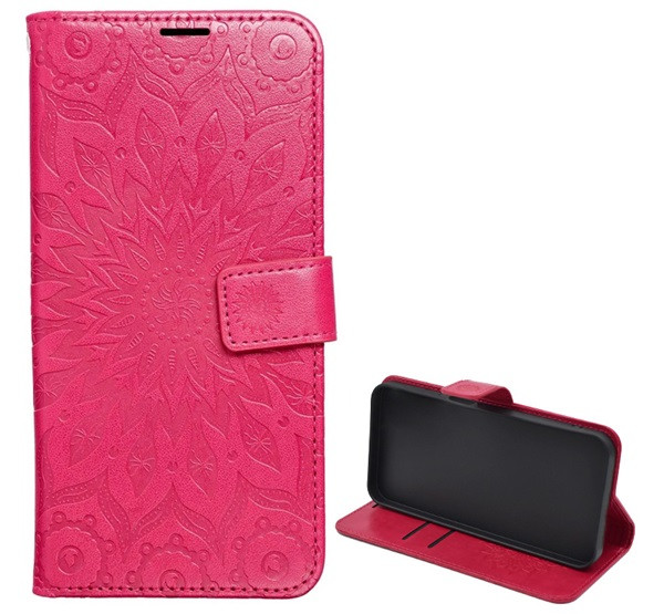 Tok álló, bőr hatású (FLIP, oldalra nyíló, asztali tartó, kézpánt, mandala) RÓZSASZÍN