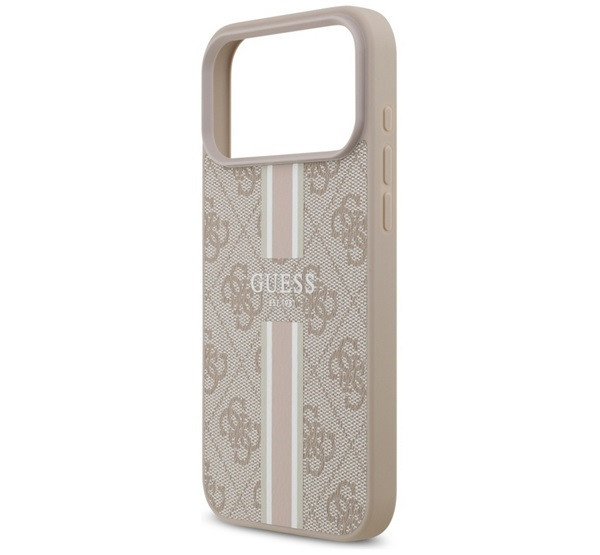 GUESS 4G PRINTED STRIPES szilikon telefonvédő (ütésállóság, bőr hatású hátlap, MagSafe) RÓZSASZÍN