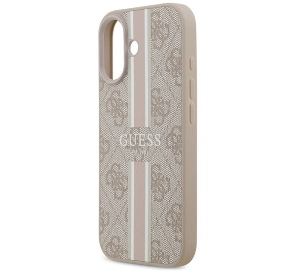 GUESS 4G PRINTED STRIPES szilikon telefonvédő (ütésállóság, bőr hatású hátlap, MagSafe) RÓZSASZÍN