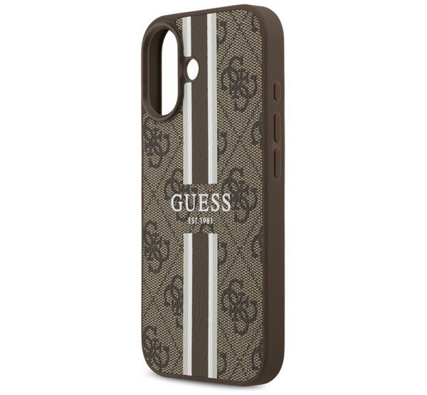GUESS 4G PRINTED STRIPES szilikon telefonvédő (ütésállóság, bőr hatású hátlap, MagSafe) SÖTÉTBARNA