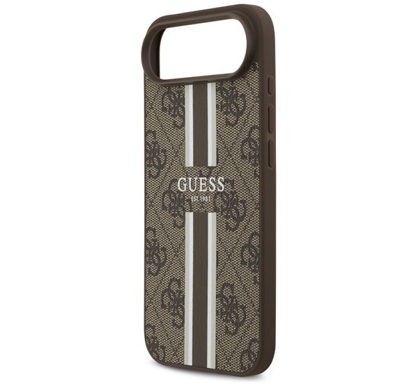 GUESS 4G PRINTED STRIPES szilikon telefonvédő (ütésállóság, bőr hatású hátlap, MagSafe) SÖTÉTBARNA
