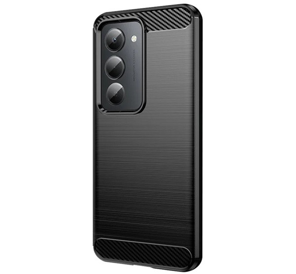 Szilikon telefonvédő (ütésállóság, légpárnás sarok, szálcsiszolt, karbon minta) FEKETE