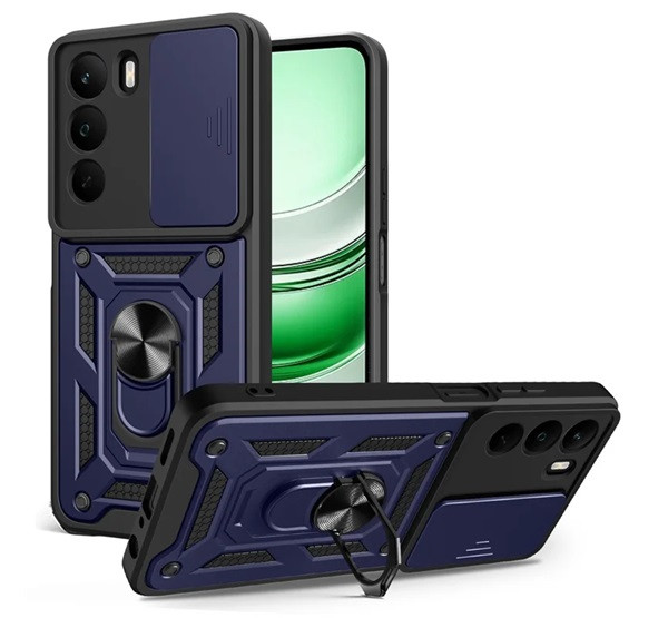 Defender szilikon telefonvédő (ütésállóság, tartógyűrű, kameravédő) SÖTÉTKÉK