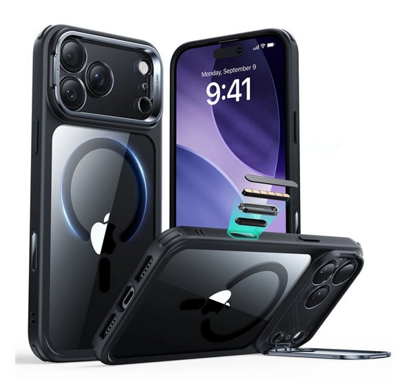 ESR CLASSIC HYBRID szilikon telefonvédő (ütésállóság, légpárnás sarok, kitámasztó, MagSafe) FEKETE