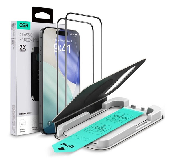 ESR ULTRAFIT képernyővédő üveg 2db (2.5D, 9H + segédkeret) ÁTLÁTSZÓ