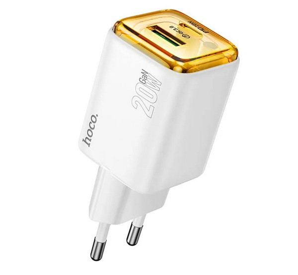 HOCO N34 hálózati töltő USB+Type-C aljzat (20W, PD gyorstöltő 3.0) FEHÉR