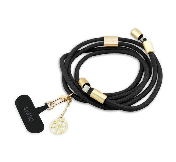 GUESS CROSSBODY STRAP 4G CHARM adatkábel (Type-C - Type-C, gyorstöltő, nyakpánt, 150cm) FEKETE