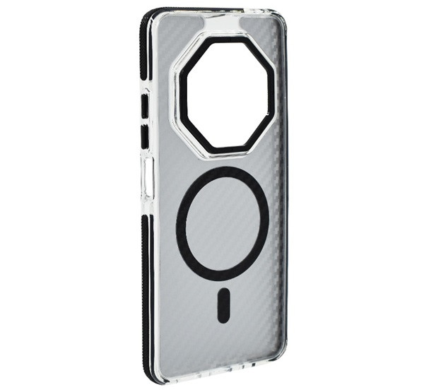 A modern karbonmintázat hangsúlyozza a tok sportos jellegét, míg az alumíniumból készült oldalsó gombok nemcsak elegáns megjelenést biztosítanak, hanem nagyobb tartósságot és határozottabb kattintási érzetet is nyújtanak.