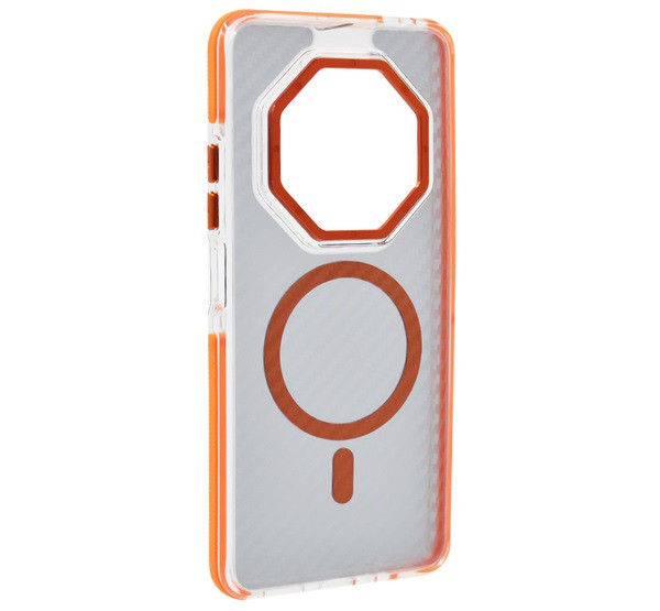 Szilikon telefonvédő (ütésállóság, légpárnás sarok, karbon minta, wireless, MagSafe) NARANCSSÁRGA