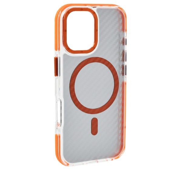 Szilikon telefonvédő (ütésállóság, légpárnás sarok, karbon minta, wireless, MagSafe) NARANCSSÁRGA