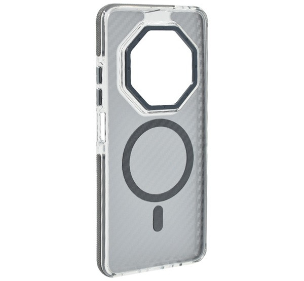 A modern karbonmintázat hangsúlyozza a tok sportos jellegét, míg az alumíniumból készült oldalsó gombok nemcsak elegáns megjelenést biztosítanak, hanem nagyobb tartósságot és határozottabb kattintási érzetet is nyújtanak.