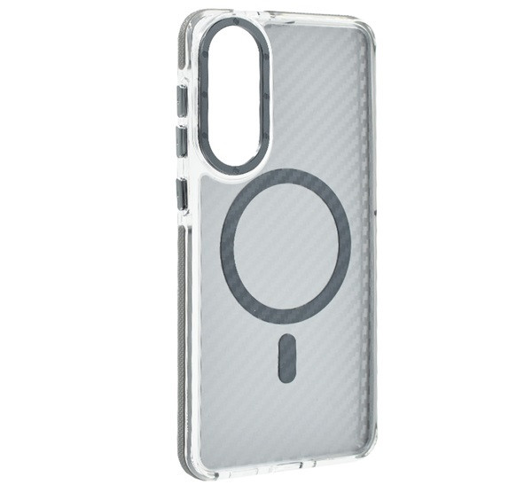 Szilikon telefonvédő (ütésállóság, légpárnás sarok, karbon minta, wireless, MagSafe) SÖTÉTSZÜRKE