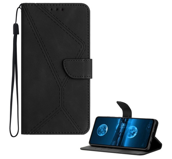 Tok álló, bőr hatású (FLIP, oldalra nyíló, asztali tartó, bankkártya tartó, varrás minta + kézpánt) FEKETE