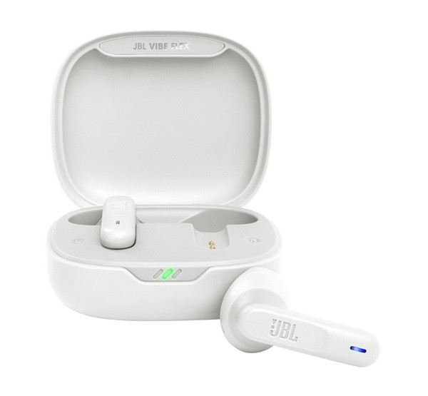 JBL VIBE FLEX bluetooth fülhallgató SZTEREO (v5.2, TWS, mikrofon, mélyhang kiemelés, IP54 + töltőtok) FEHÉR