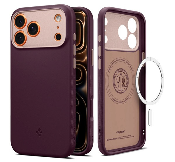 SPIGEN NANO POP szilikon telefonvédő (kameravédő, MagSafe) BURGUNDY