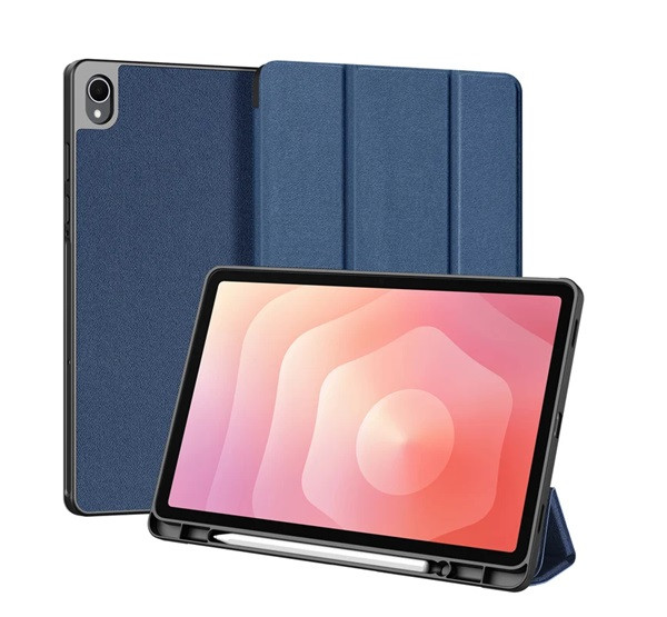 DUX DUCIS DOMO tok álló, bőr hatású (aktív FLIP, oldalra nyíló, TRIFOLD, asztali tartó, ceruza tartó) SÖTÉTKÉK