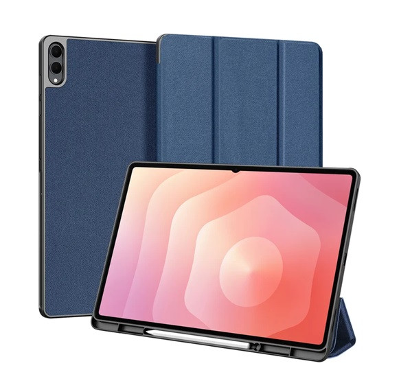 DUX DUCIS DOMO tok álló, bőr hatású (aktív FLIP, oldalra nyíló, TRIFOLD, asztali tartó, ceruza tartó) SÖTÉTKÉK