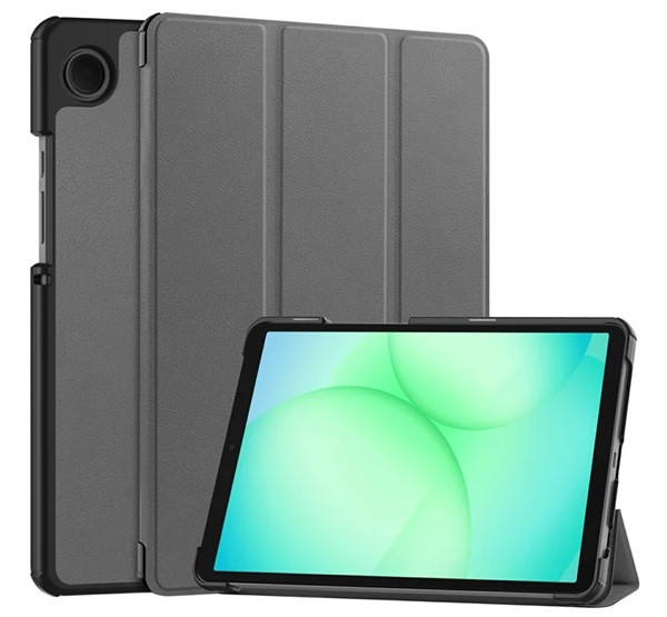 Tok álló, bőr hatású (aktív FLIP, oldalra nyíló, TRIFOLD, asztali tartó) SÖTÉTSZÜRKE