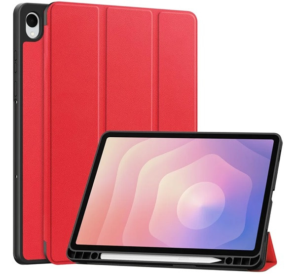 Tok álló, bőr hatású (aktív FLIP, oldalra nyíló, TRIFOLD, asztali tartó, ceruza tartó) PIROS