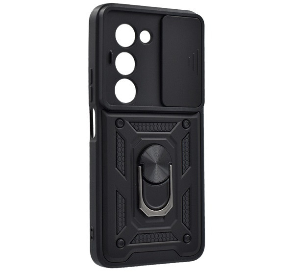 Defender szilikon telefonvédő (ütésállóság, tartógyűrű, kameravédő) FEKETE